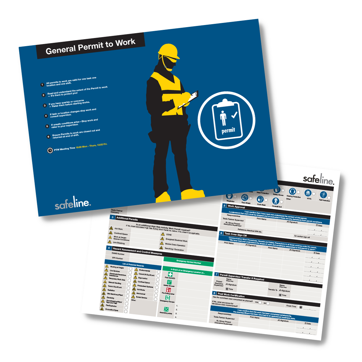 Permit-to-Work and SPA duplicate/triplicate books are available. To place an order, email info@safelineglobal.com.